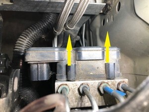 Release the master cylinder brake lines from clip at rear of hydraulic control unit bracket