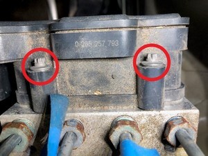 Torque lower left bolt securing hydraulic control unit ECU to hydraulic control unit