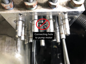 NoteAlign pump motor on ECU with connecting hole on hydraulic control unit
