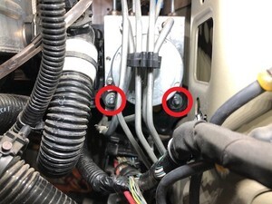 Remove upper bolts securing hydraulic control unit ECU to hydraulic control unit