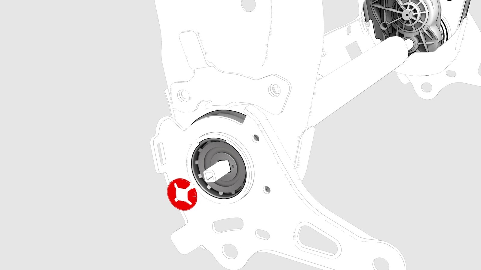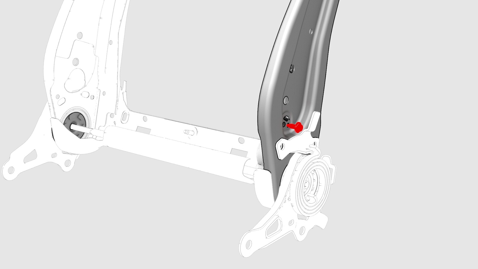 1. Install the recliner motor onto the seat back frame, and hand-tighten the bolt that attaches the motor to the frame