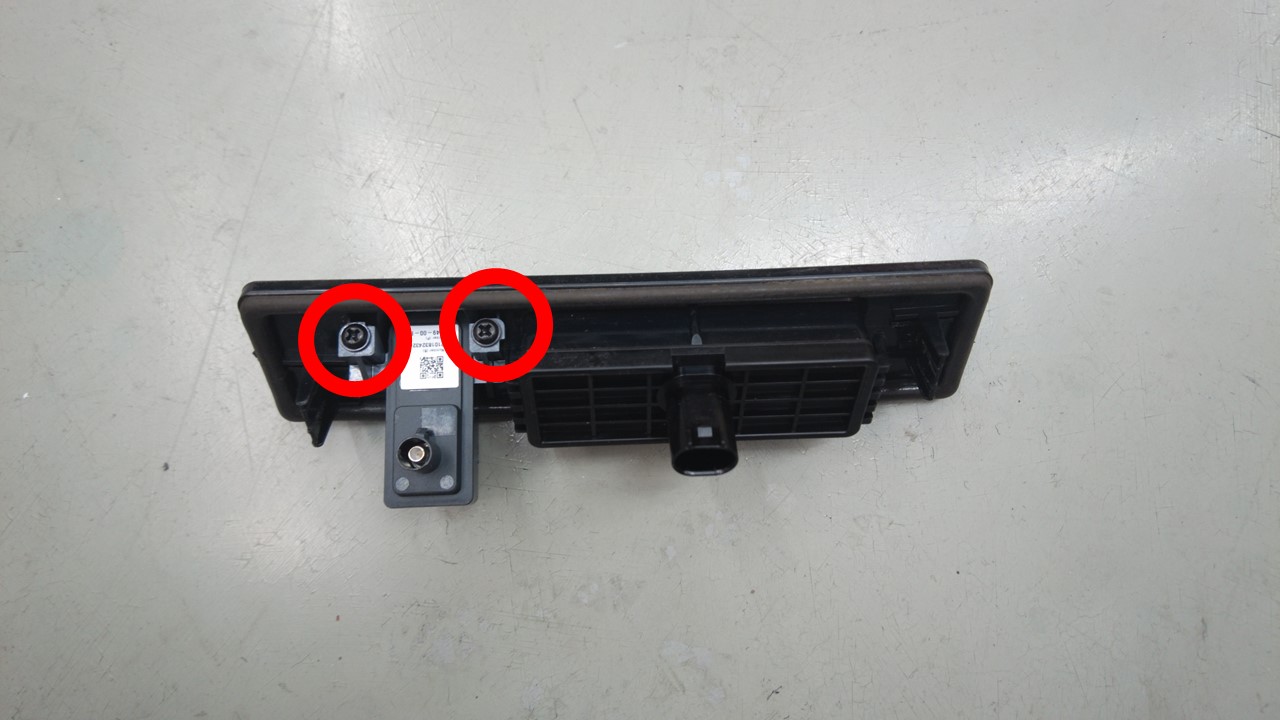 | Screws (x2) that attach the rear facing camera to the exterior liftgate switch |
