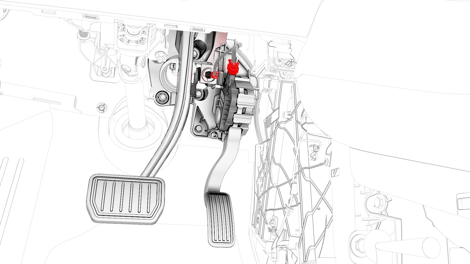 NoteIf the connector locking tab is red: push the red locking tab towards the pedal housing.