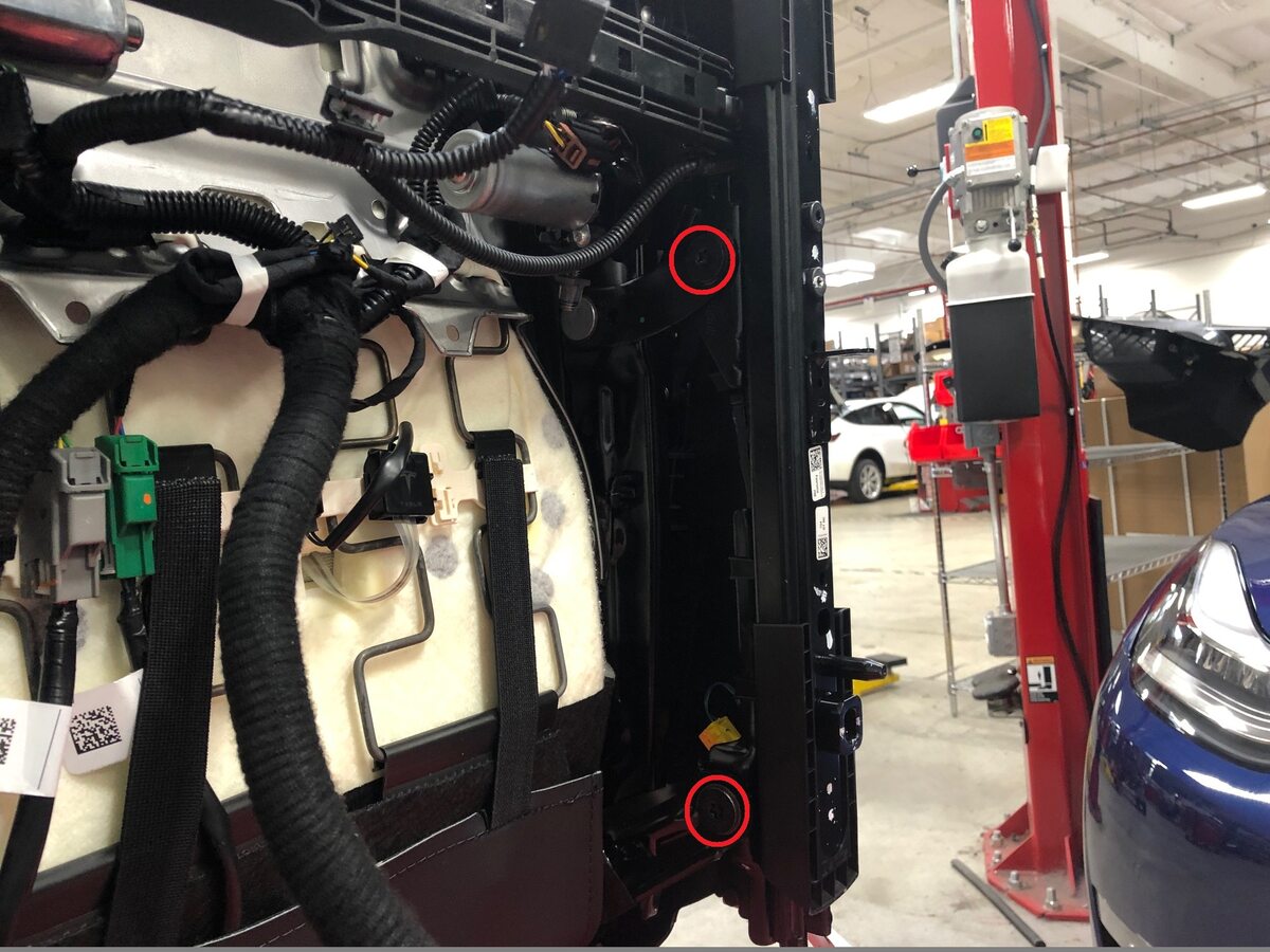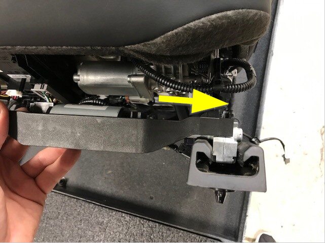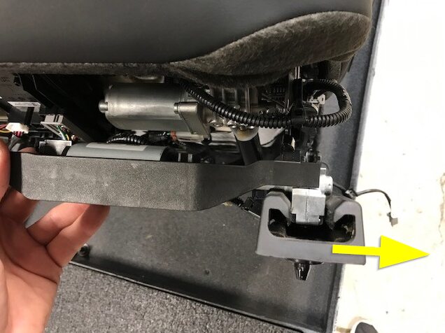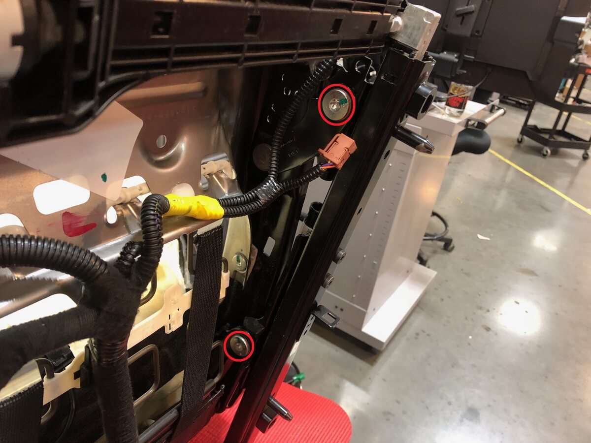 Install new bolts (x2) that attach the front passenger seat inner track to the seat