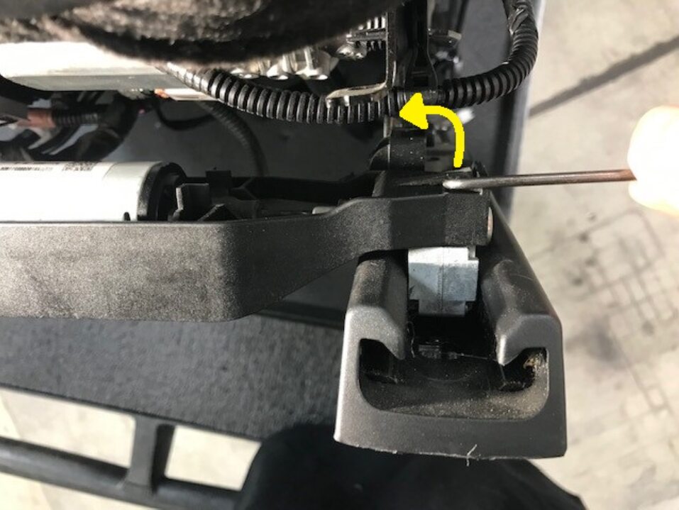 NotePry up on bridge tack motor tab, and then slide the inner seat track away to release it.