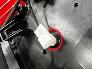 Secure the fir tree clips (x2), and then secure the shoulder switch harness to the