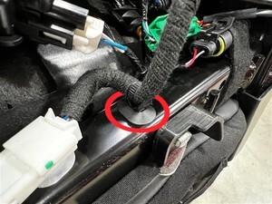 Secure the clips (x2) that attach the RH 2nd row seat backrest harness to the bottom