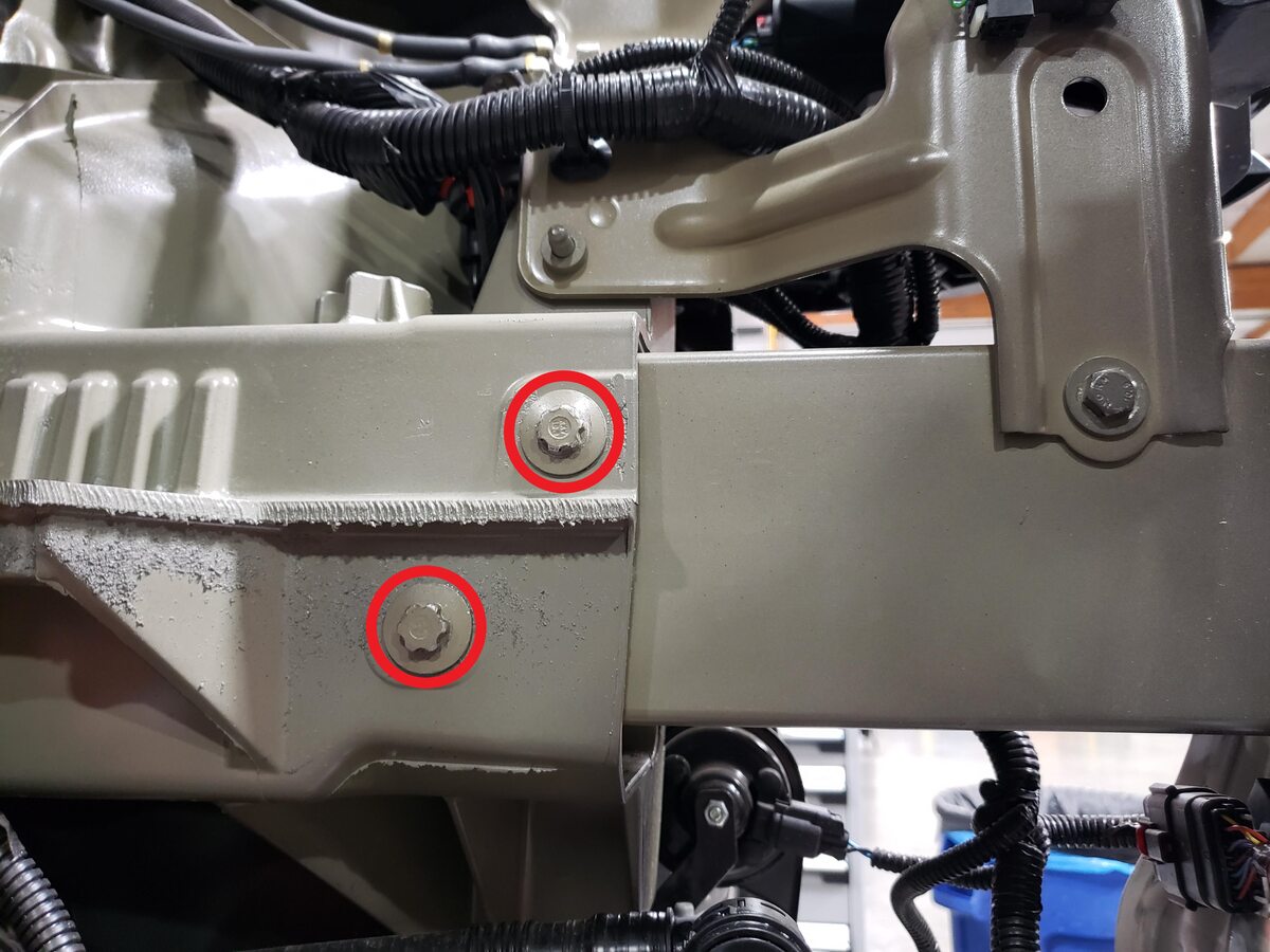 Install the bolts (x5) that attach the top of the front fascia to the vehicle.