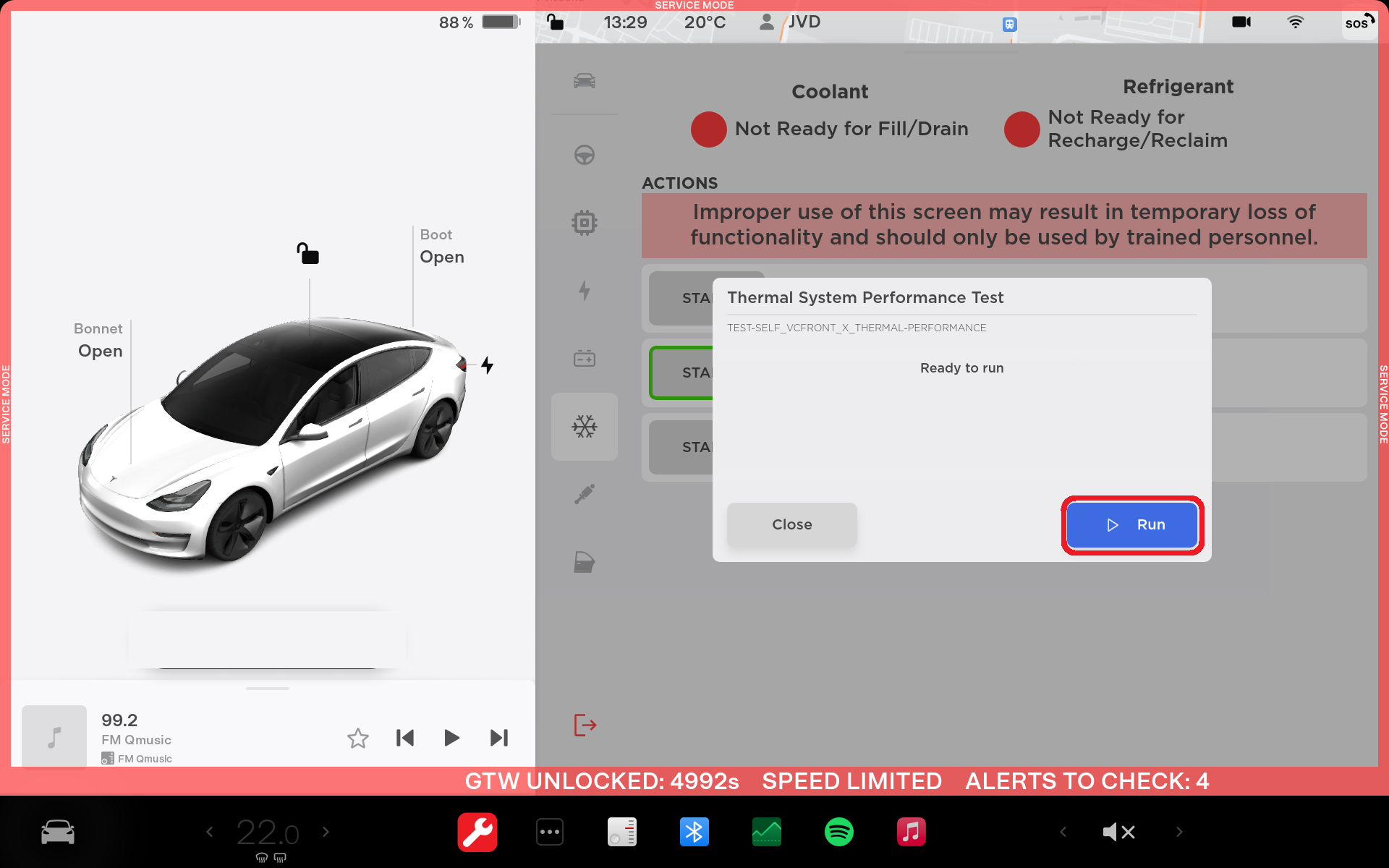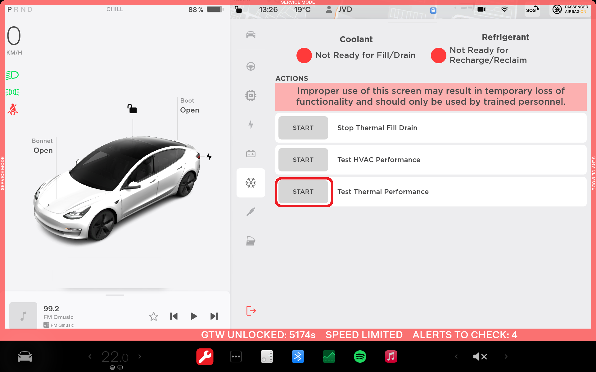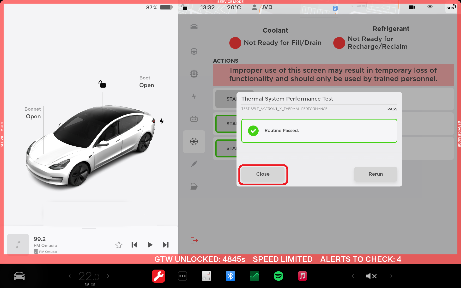 Perform the "Thermal Performance" routine through the touchscreen: Click "thermal icon" > Actions, then click Test Thermal Performance, and then Run. Close the window once the routine passes.