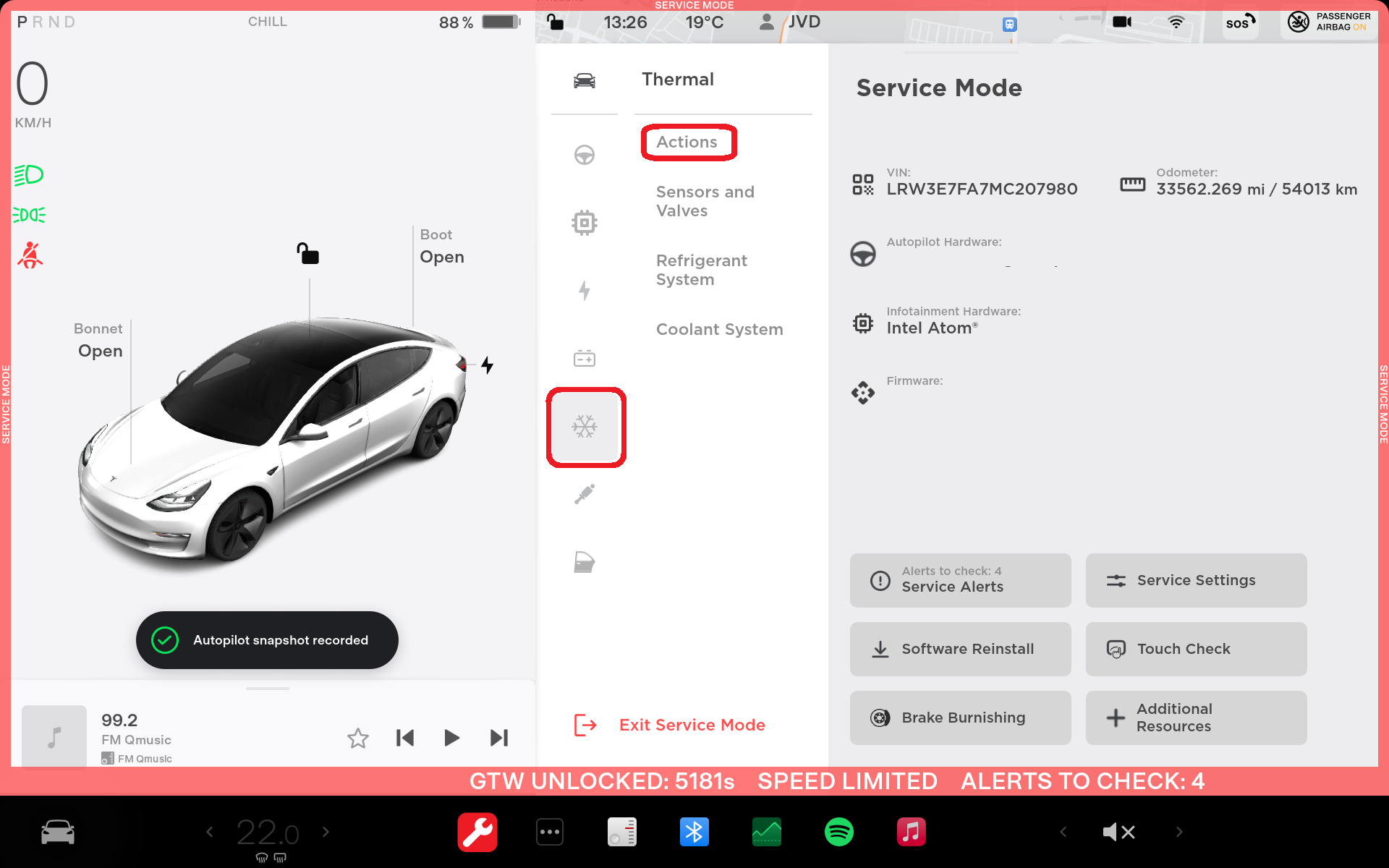- Use the touchscreen to place vehicle in service mode.