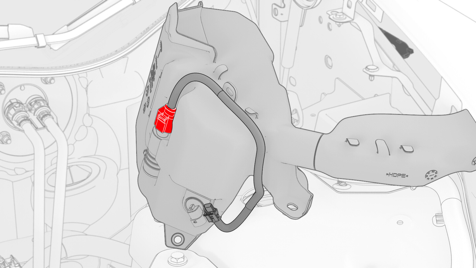 NoteMove the washer tank forward, and then up to access the level sensor connector.