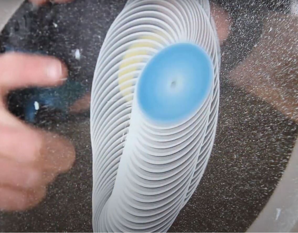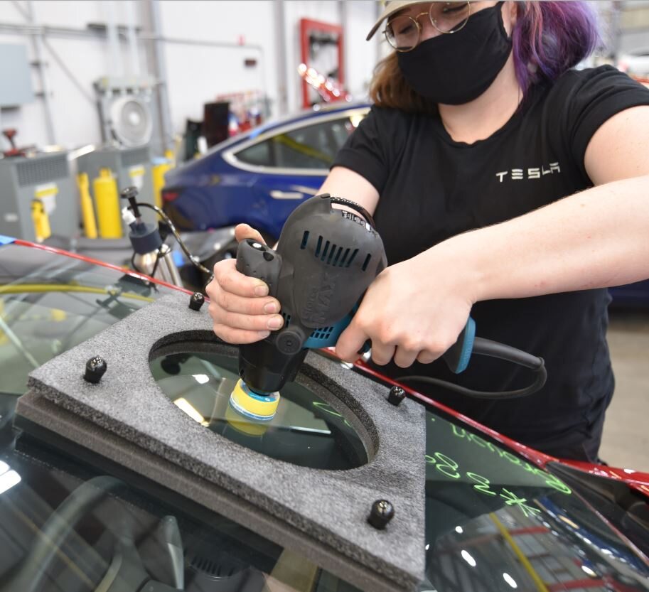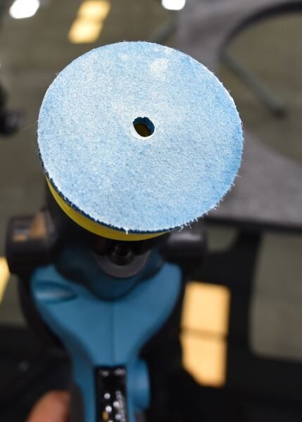 Re-pressurize the water feed bottle, and then repeat step 13 to finish polishing the windshield in the direction of the scratch.