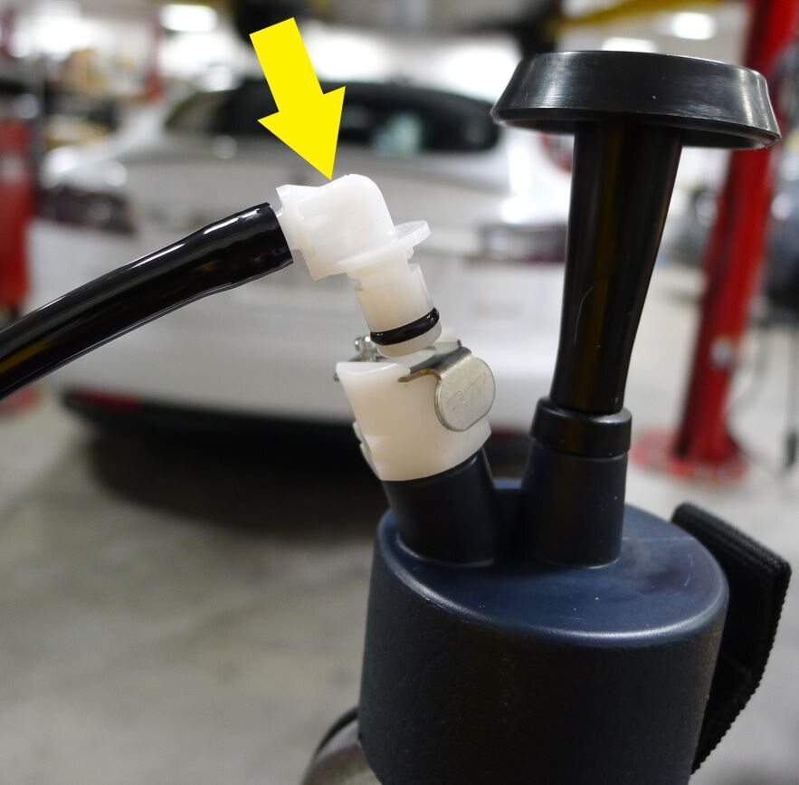Place the fender cover on the hood, and then position the step stool near the vehicle as necessary to maintain a comfortable position when applying direct downward pressure.