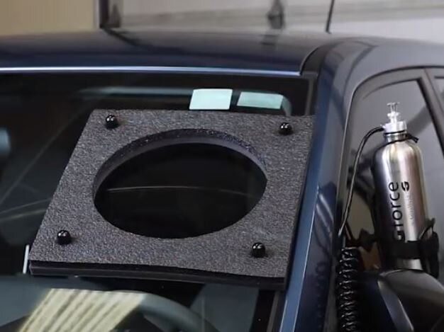 Use the suction cup holder to install the water feed bottle on the vehicle.