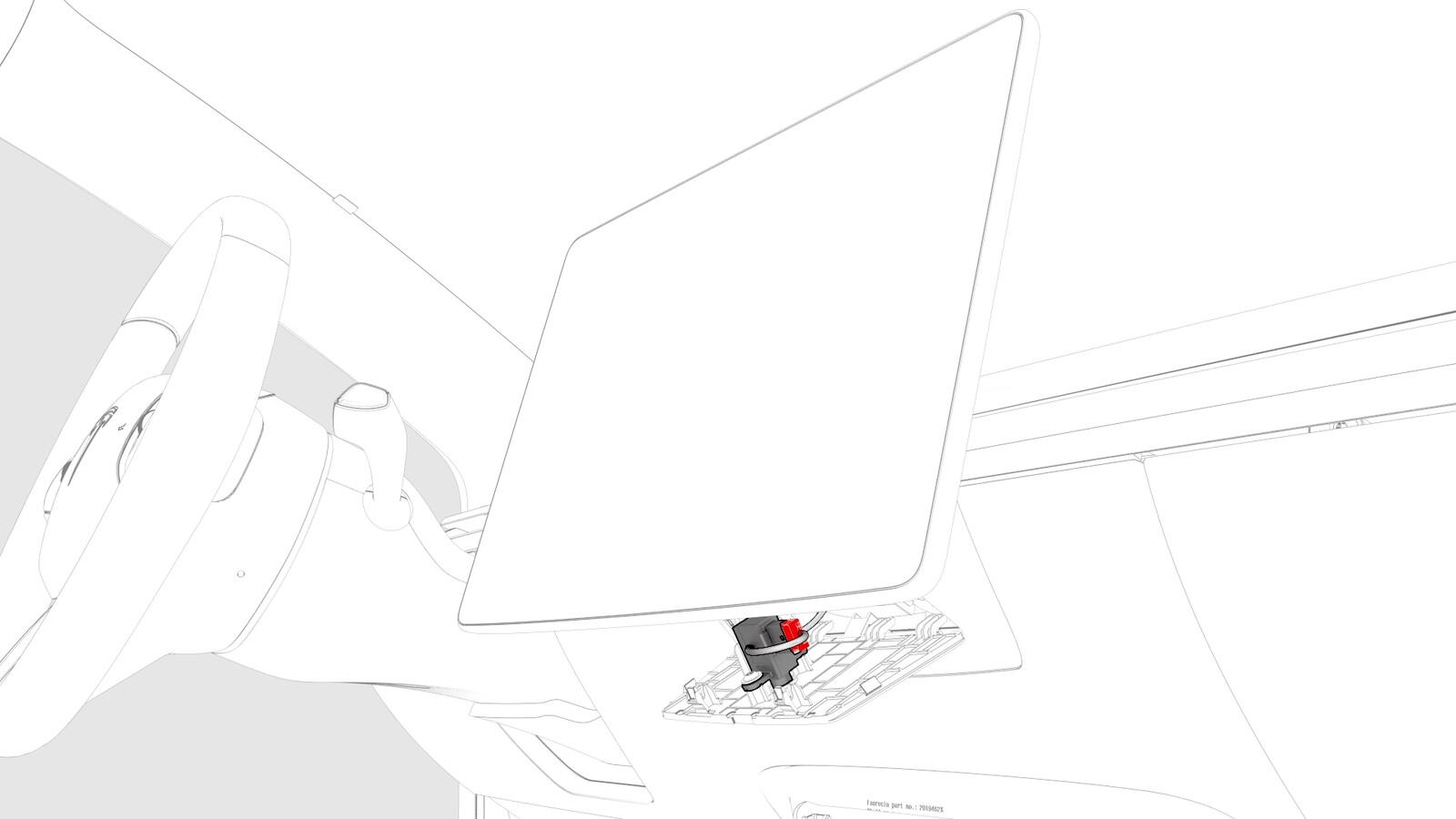 Remove the bolts that attach the cabin temperature sensor to the touchscreen, and then remove the sensor.