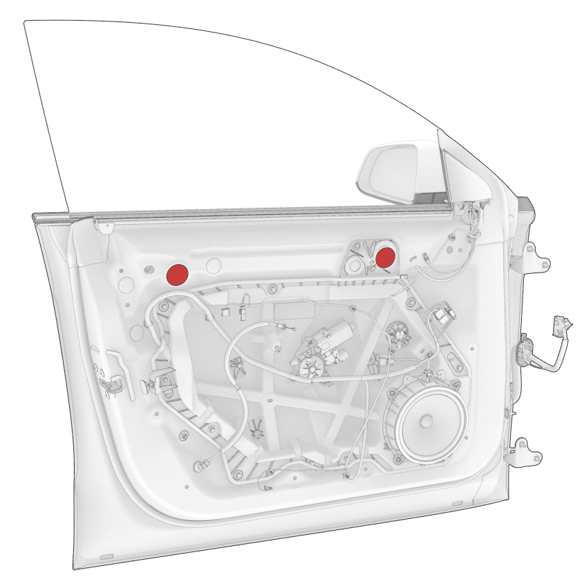 - Check again the gap and flushness of the front LH door glass and make adjustments, if necessary.