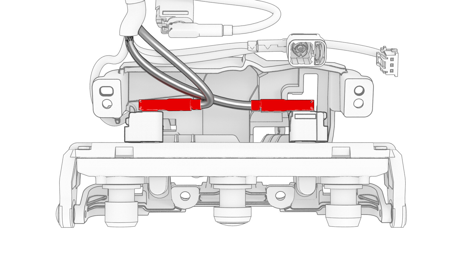 - Bring the upper quad camera cover to the windshield bracket, and then connect the electrical harness to the occupant camera on the inside of the cover.