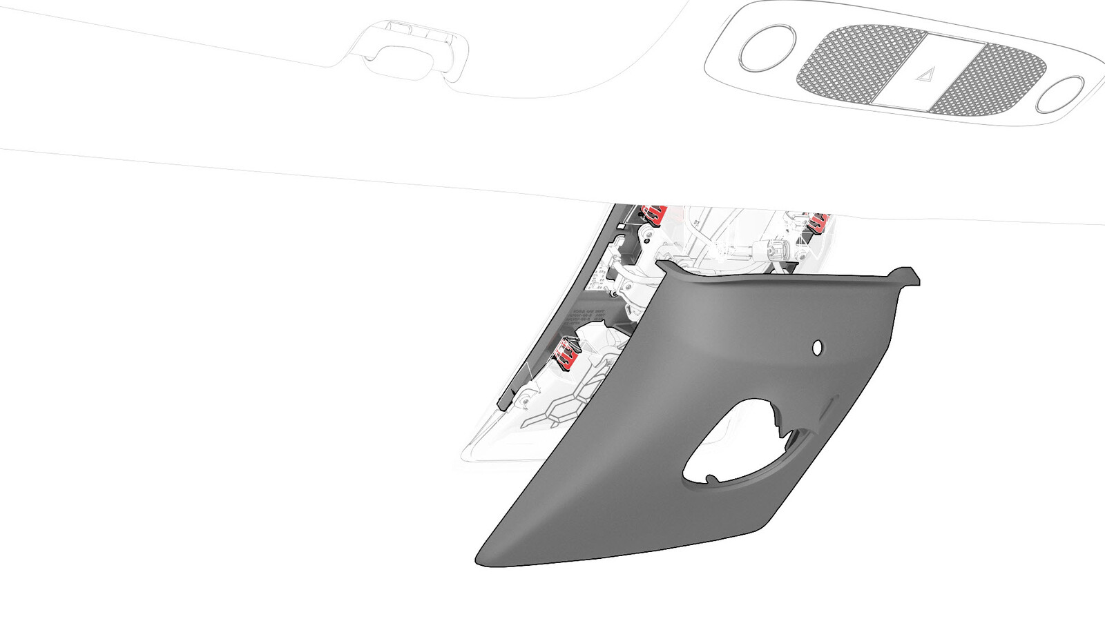 - Disconnect the electrical harness from the occupant camera on the inside of the upper quad camera cover, and then remove the camera cover from the vehicle.