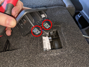 NoteUse small screwdriver to manipulate the center seatback latch to release