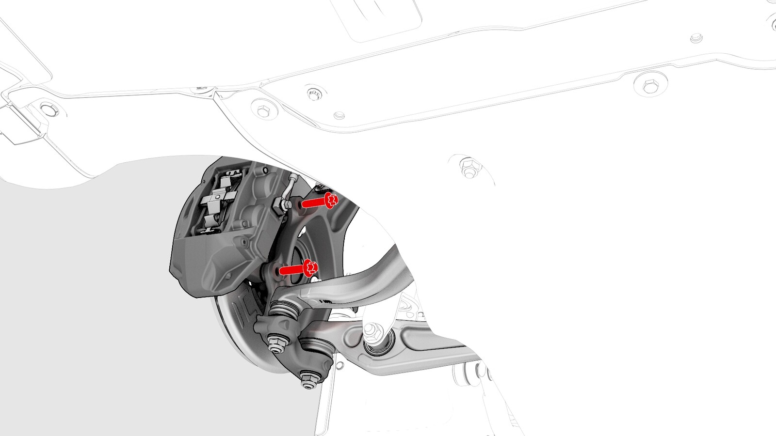 | Bolts that attach the LH front caliper to the LH front knuckle |