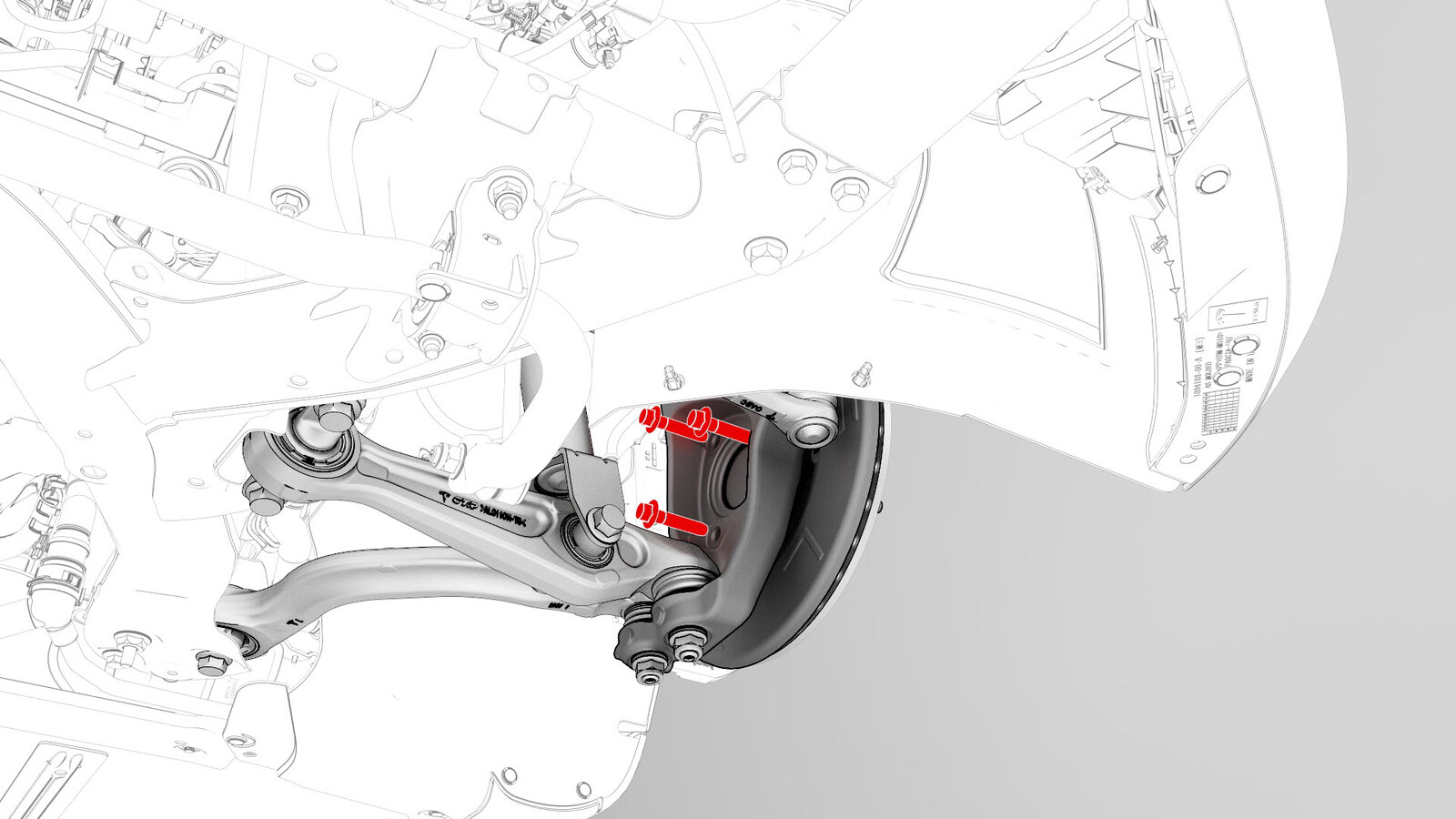| Bolts that attach the LH front hub and bearing to the LH front knuckle |