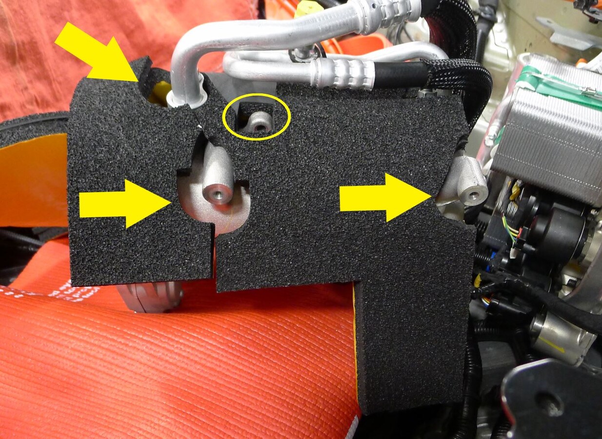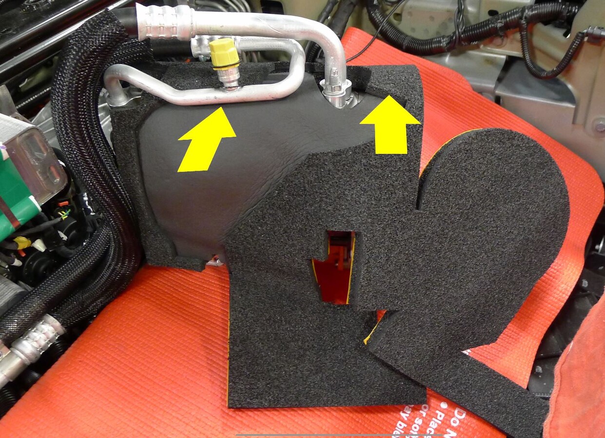 on the A/C compressor, making sure the blanket properly fits around all mounts, pipes,