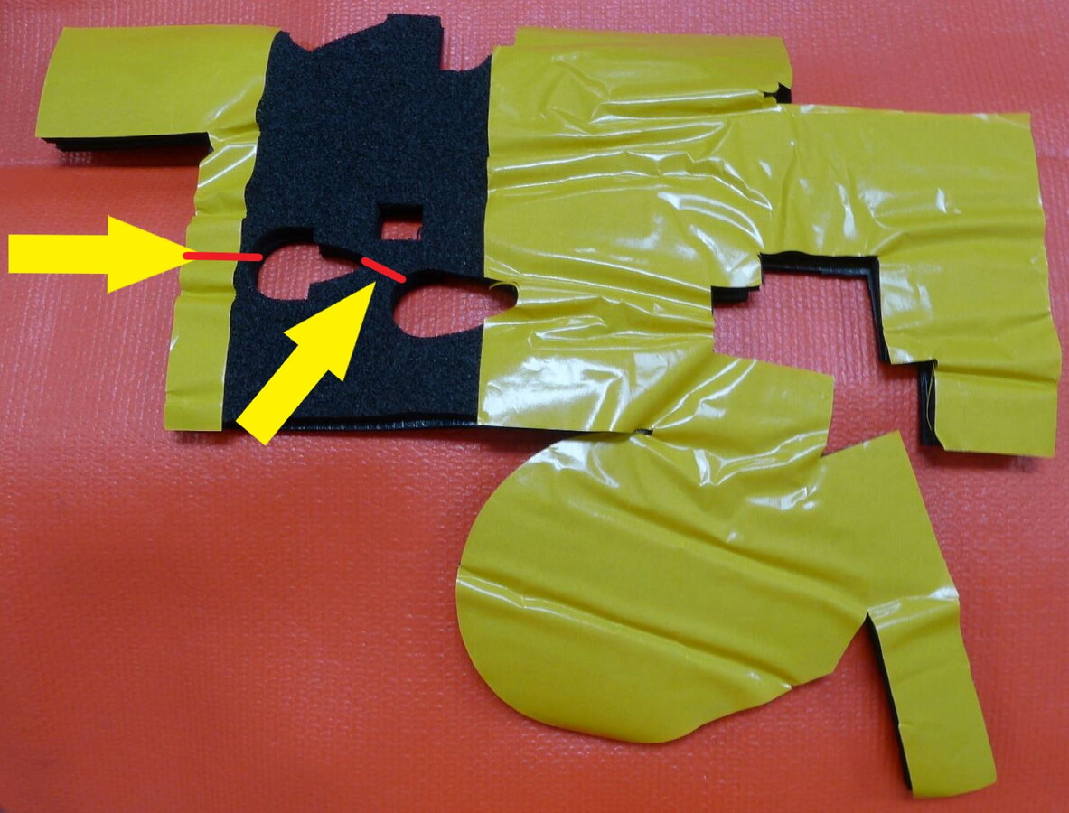 Make 2 cuts on the acoustic blanket as indicated by the red lines so that the blanket