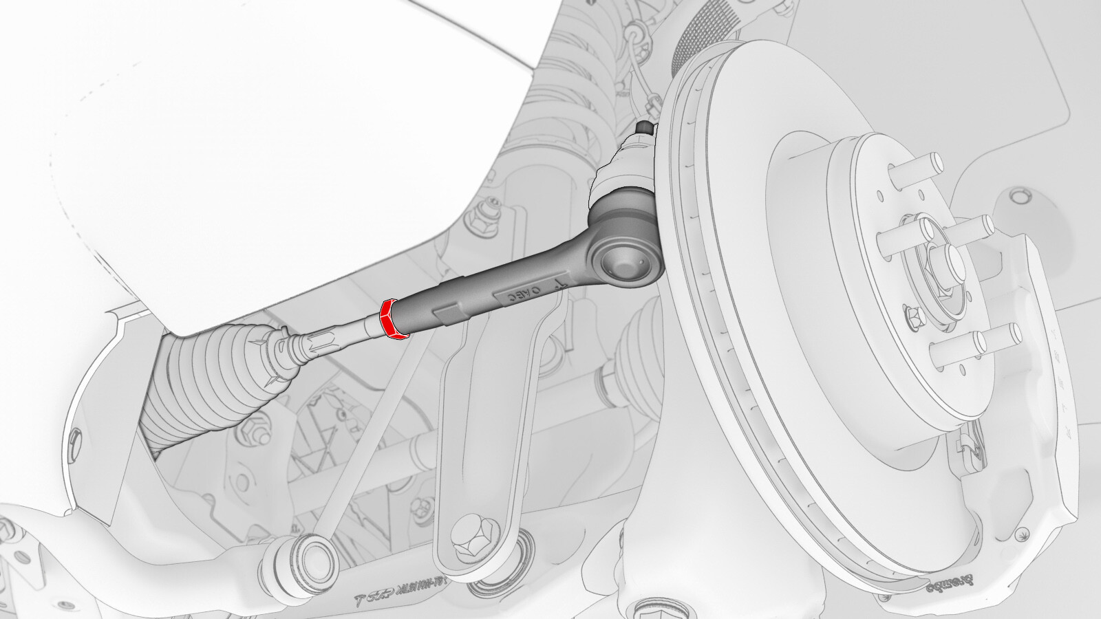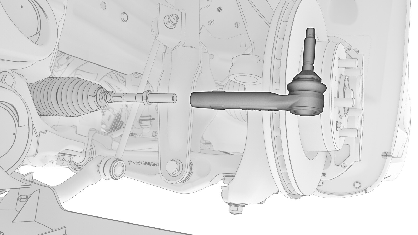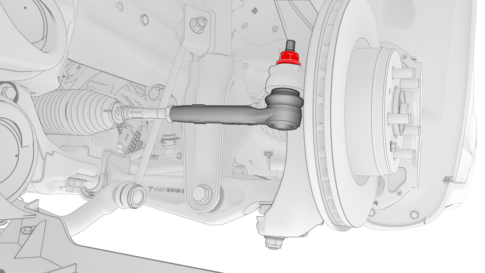 - Remove the LH tie rod end from the knuckle using a rubber hammer.