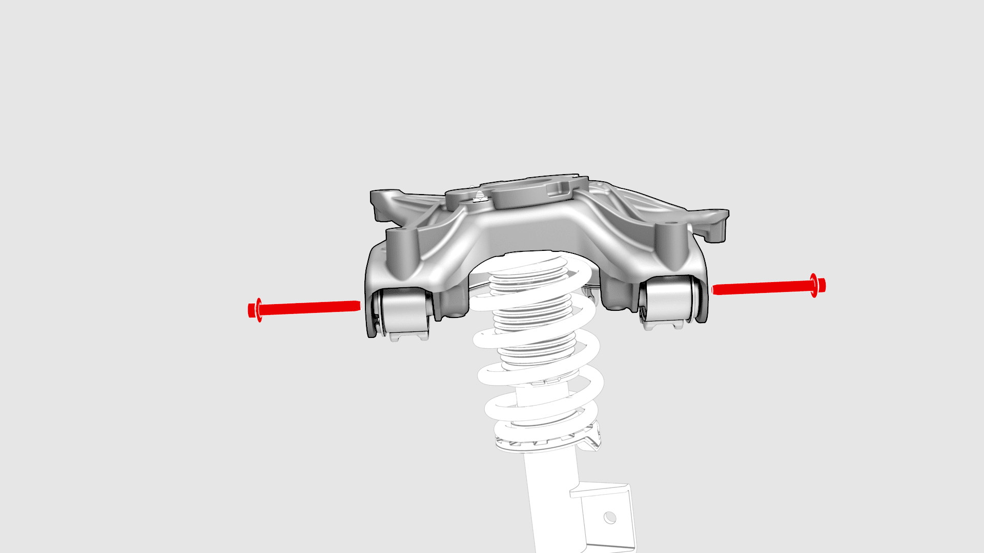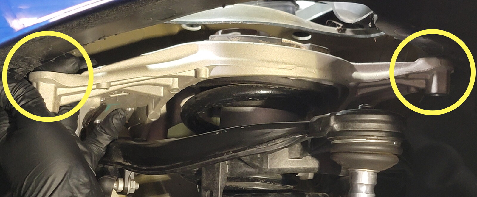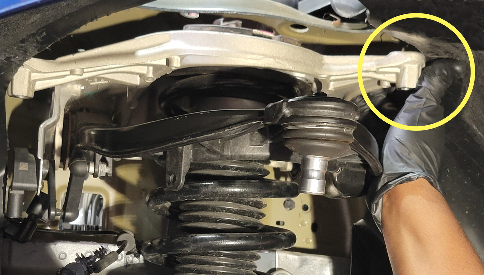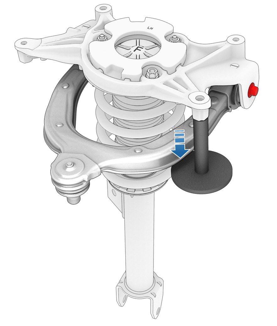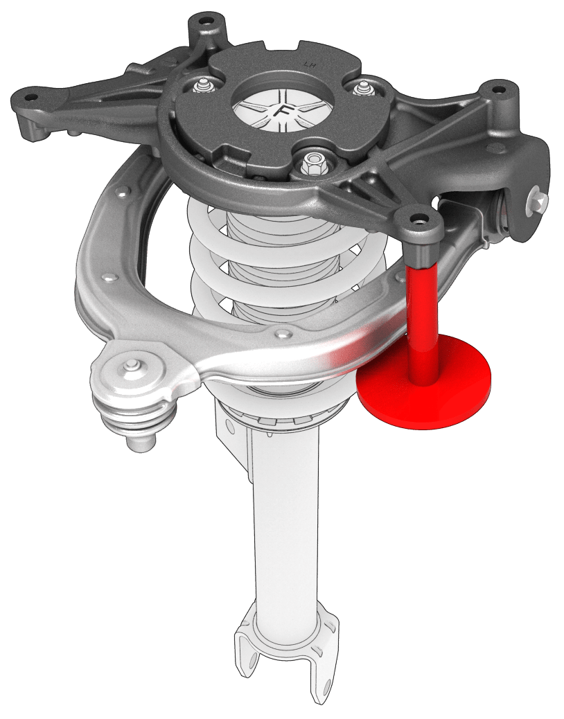 - Remove the FUCA ride height tool from the front upper control arm mount.