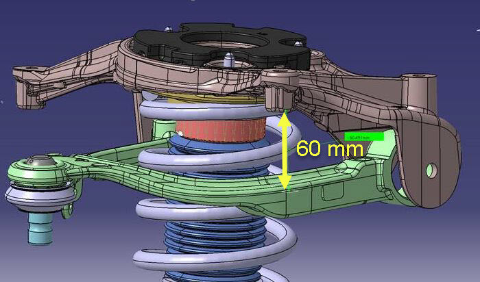 - Lay a pocket ruler across the upper flat surface of the front upper control arm.