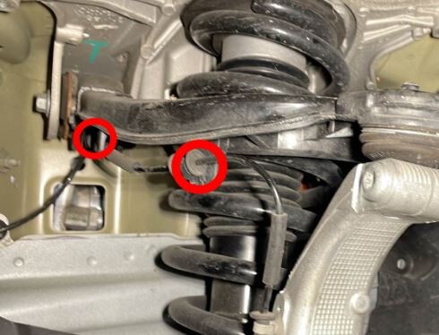 hand-tighten the bolts (x2) that attach the control arm to the mount.