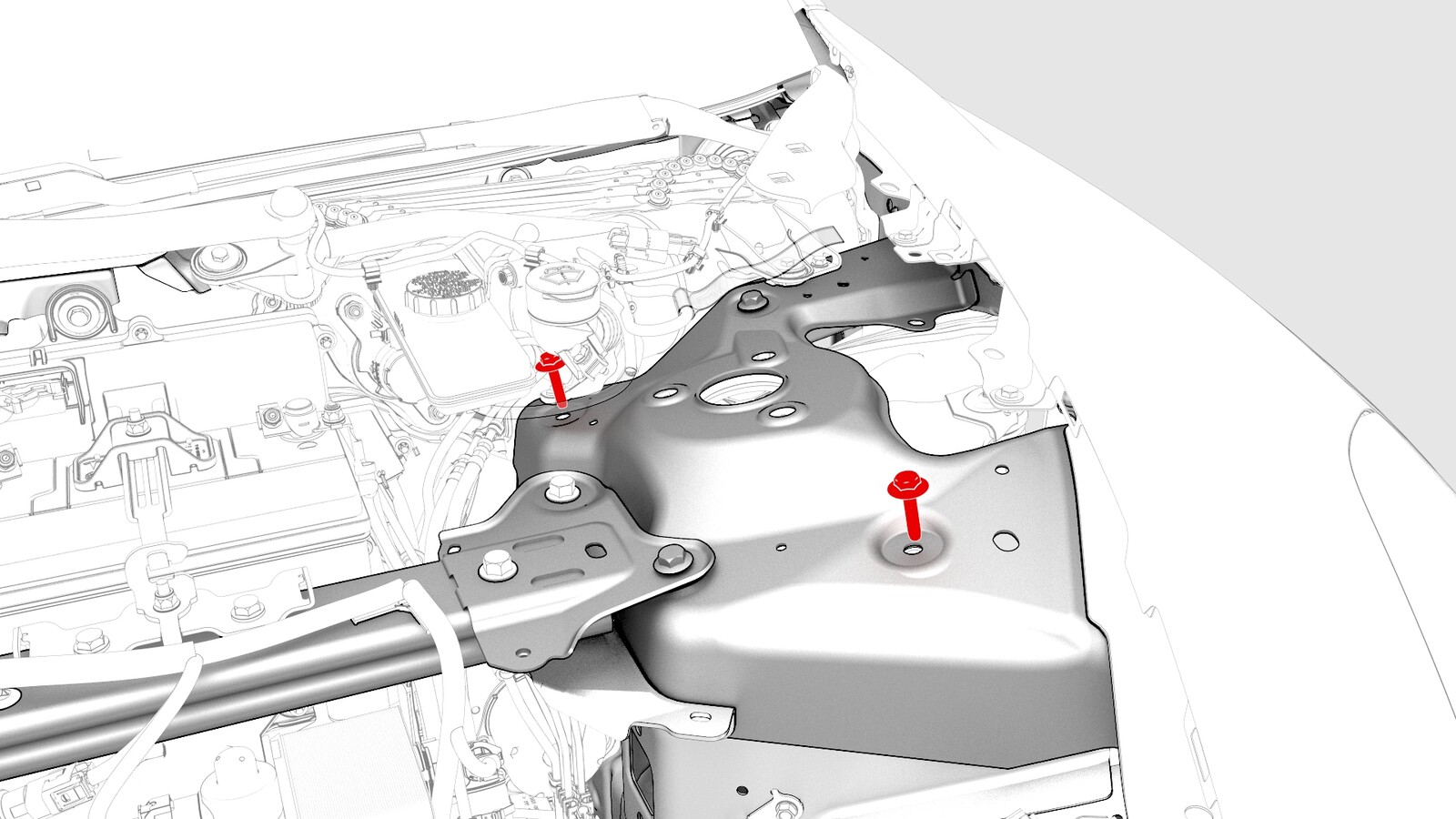 - Remove the rear underhood apron. See Underhood Apron - Rear (Remove and Replace).