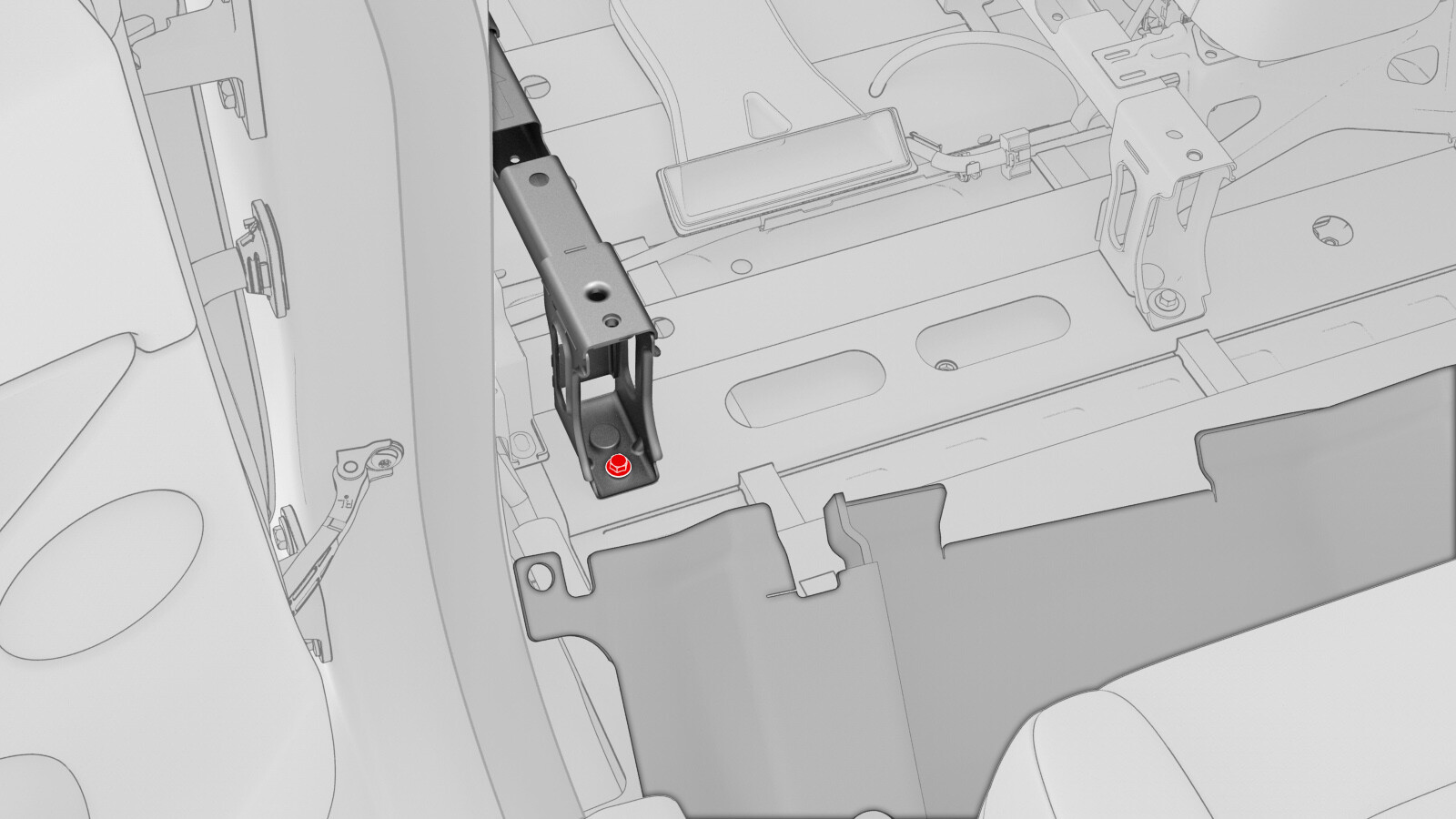 NoteLift up on the front edge of the rear main carpet near the rear of the LH outboard seat riser.