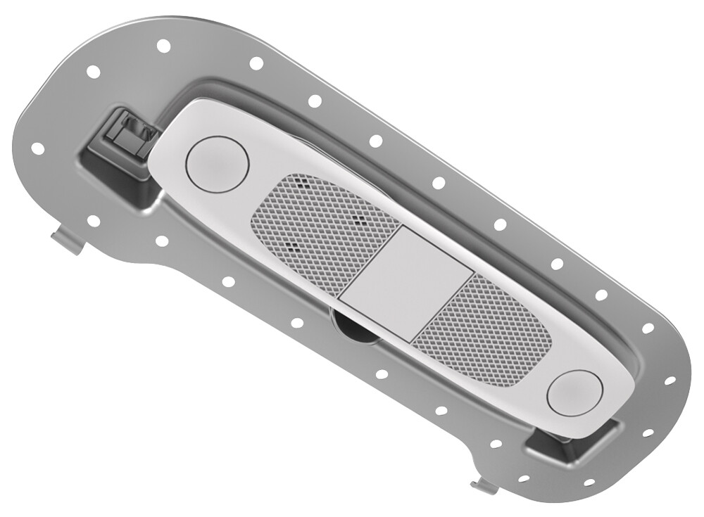 CAUTIONTo avoid damaging the headliner, do not pry against the headliner. Insert a 90 degree trim tool near the dome light and pull downwards to release the clip, and then move to the other side to release the remaining clip.