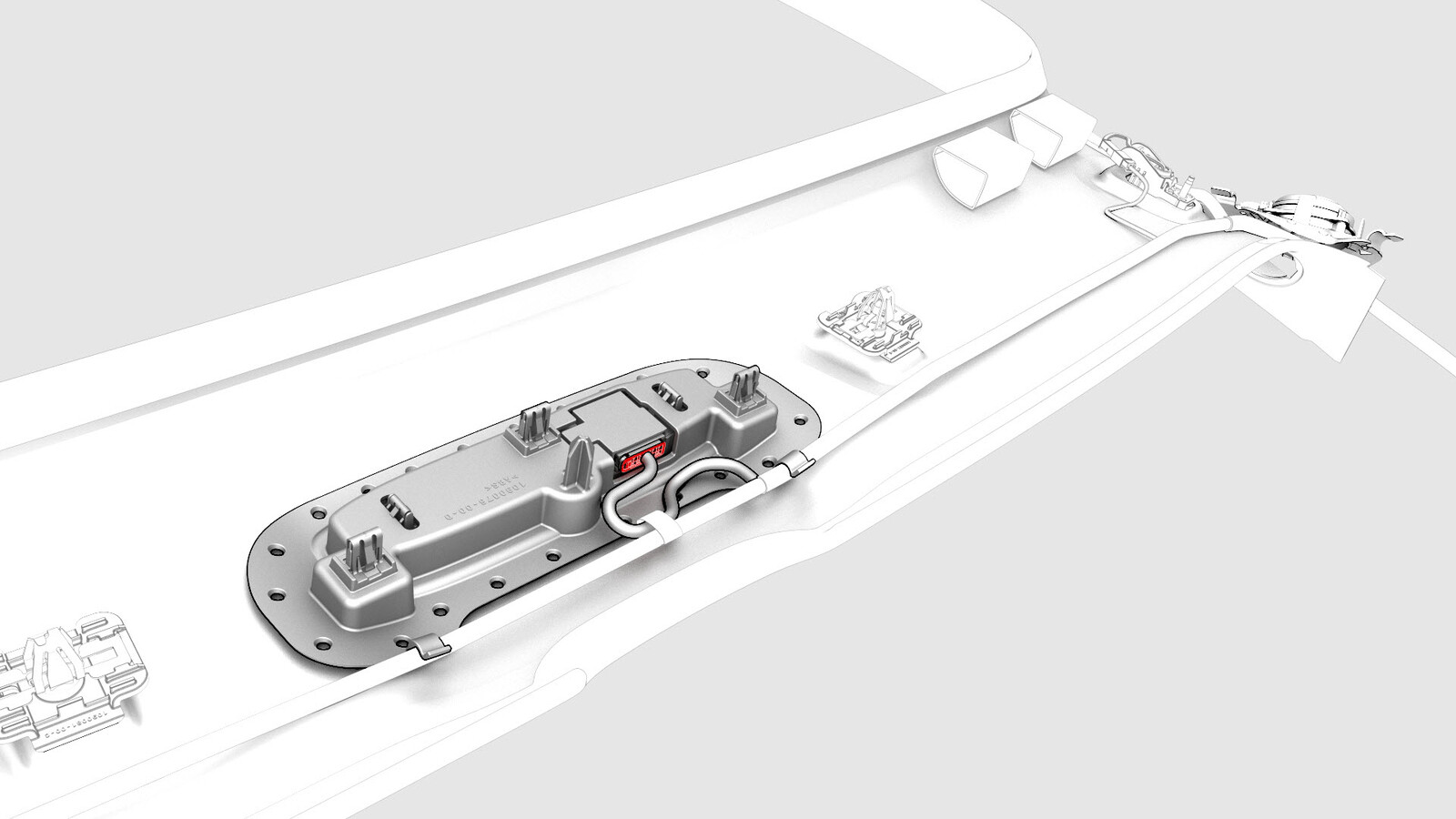- Push the front overhead console upwards into the headliner and engage the clips (x2)