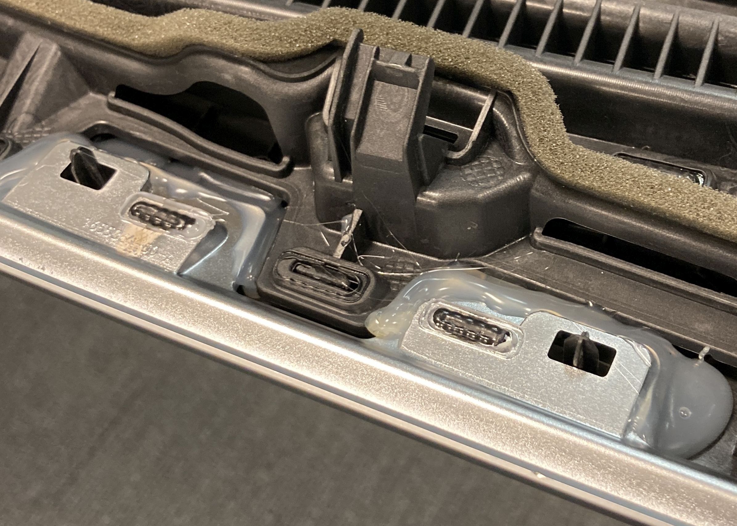- Place the main instrument panel decor trim upside down on a portable bench or support stand.