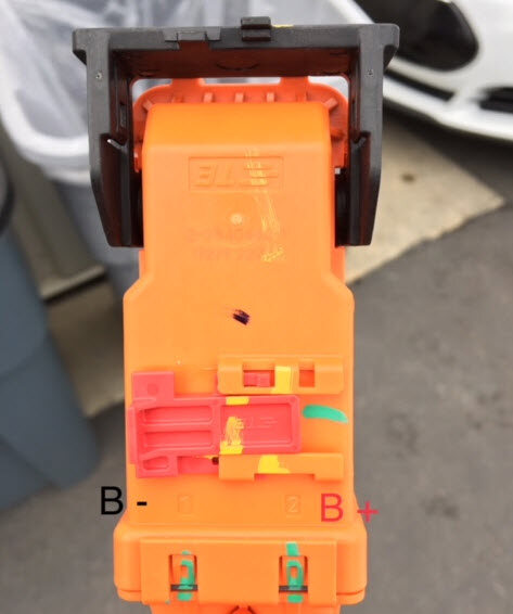 Pin #1 on HV cables is B- and Pin #2 is B+.