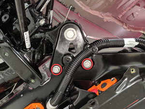 | Bolts that attach the LH rear damper at the top mount |