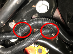 Release the LH side hose clips from
