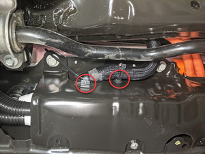 | Nuts that attach the HV battery to rear drive unit harness bracket to the HV battery |