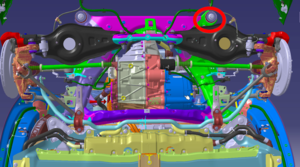 | Large bolt that attaches the LH shear plate and rear subframe to the body |