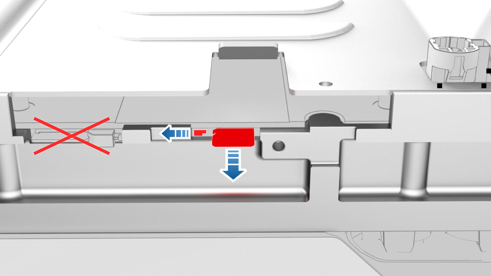 NoteEnsure the install guide slide is in the down position. Slide the SD card into the top of the tool from left to right until fully seated. The SD card contacts should be facing rearward during installation.