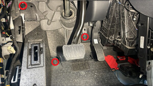 Install the screw and push clips (x2) that attach the LH footwell cover to the vehicle.