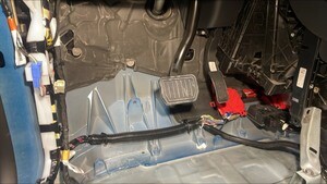 Position the LH carpet support into the vehicle, and then install the clips (x3) that attach the support to the vehicle.