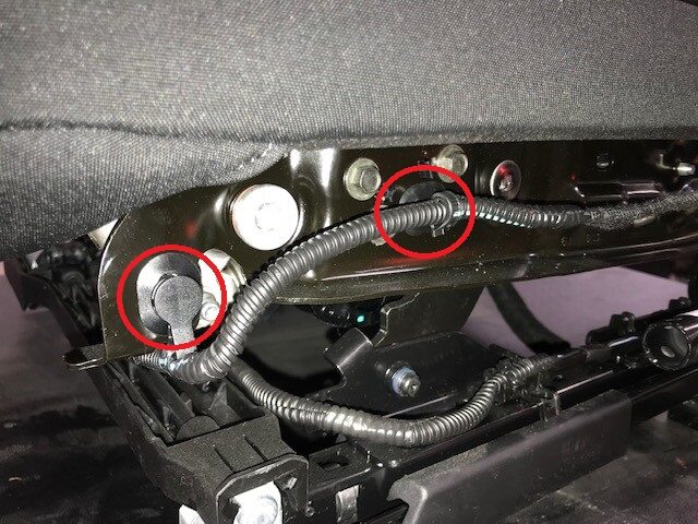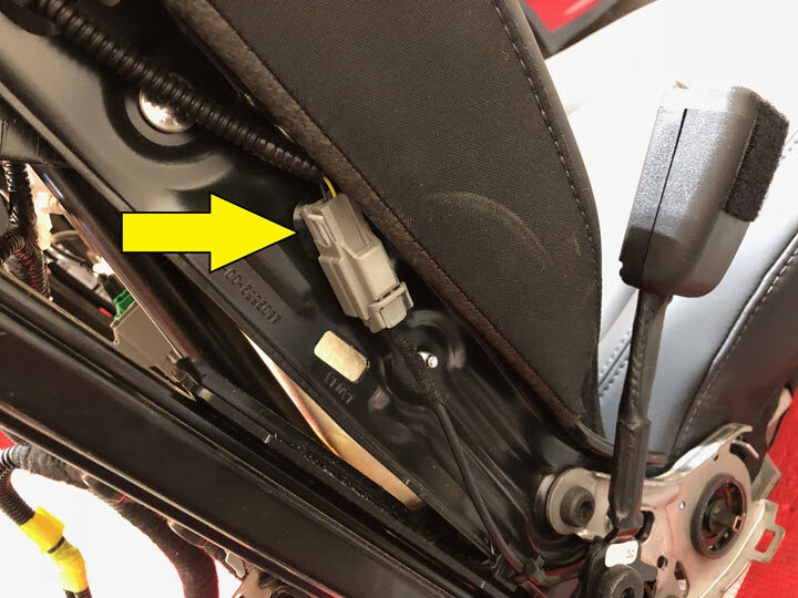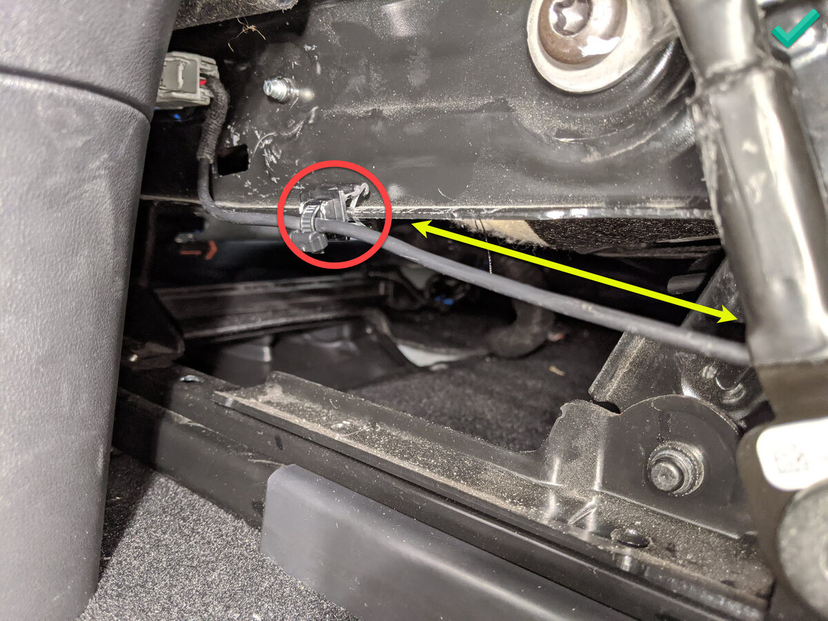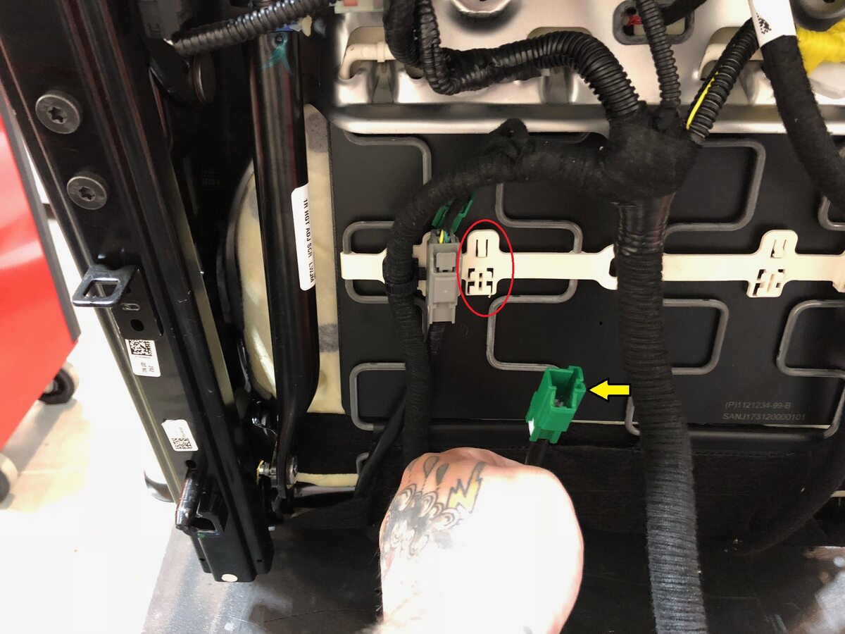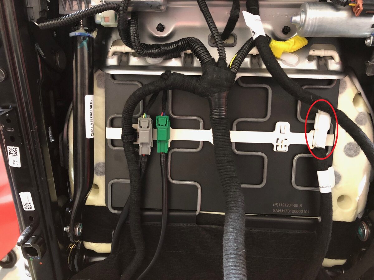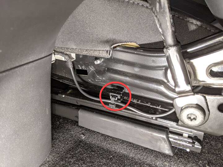 Install the clip securing the harness to the under side of the seat, next to the seat heater connectors