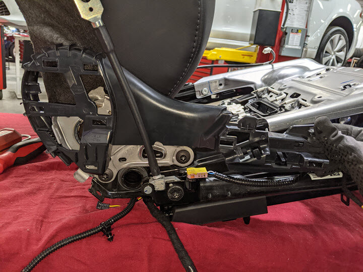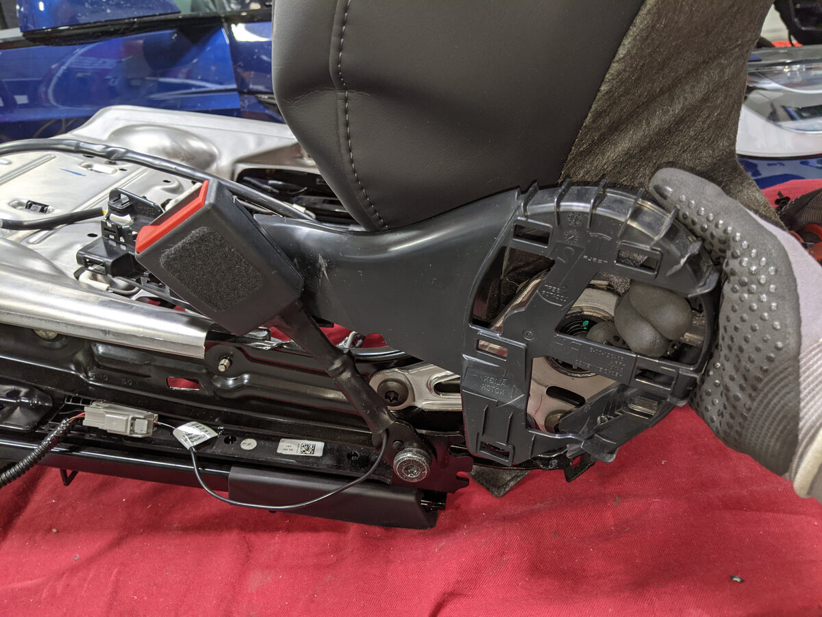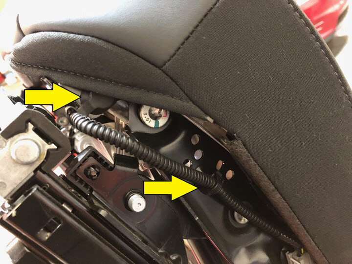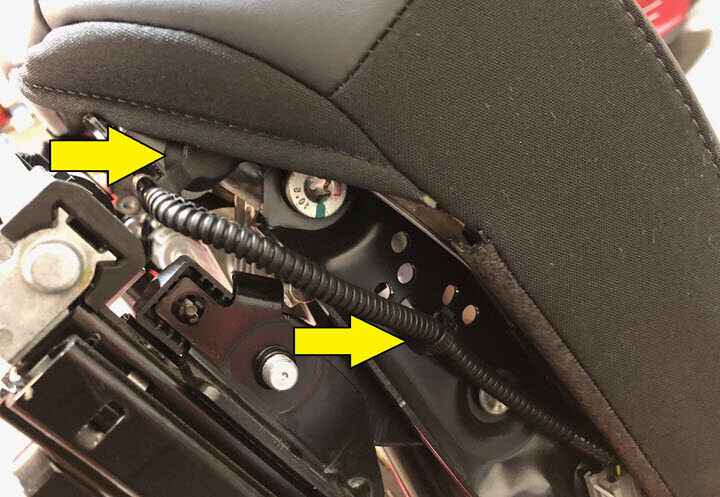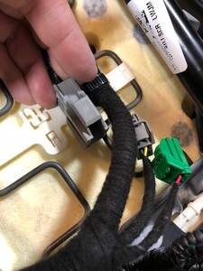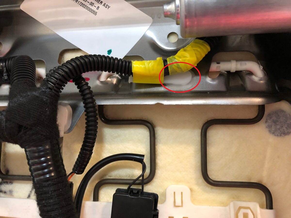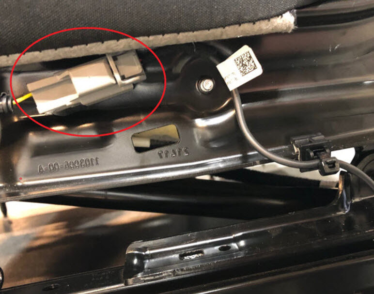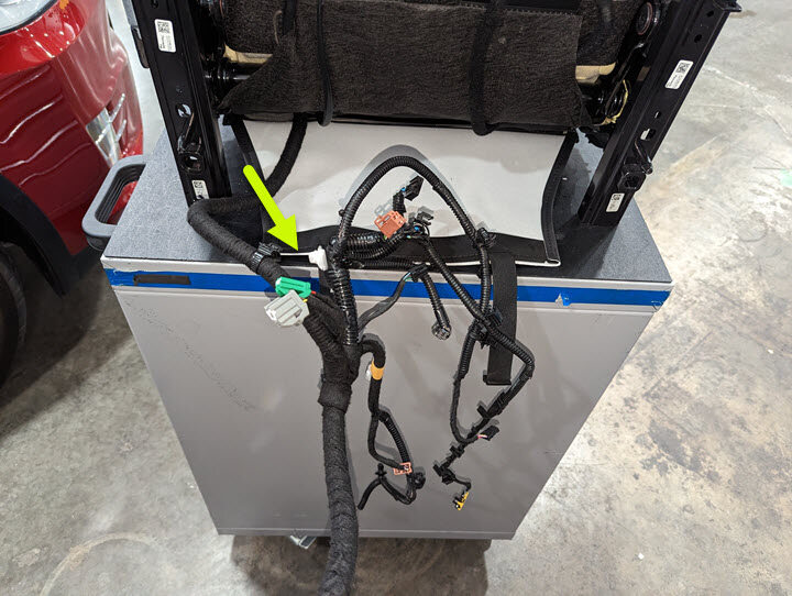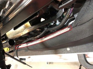 Install the clip securing the harness to the under side of the seat, next to the seat heater connectors