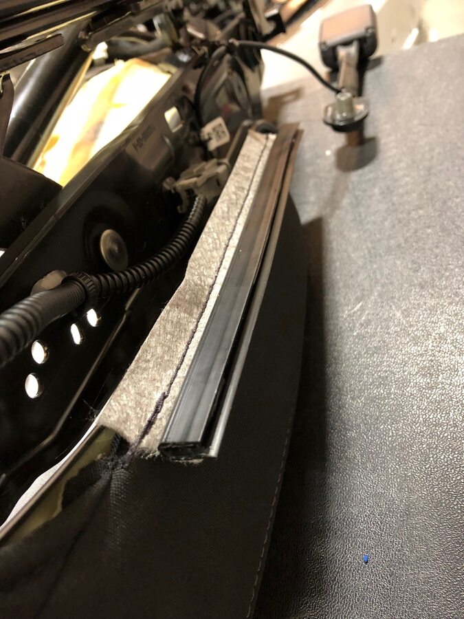 Note1x clip strip, Fold the clip over towards the frame, The open end should engage the seat frame, if not the trim will need to be pulled until the correct amount of tension is achieved, Line up one end of the clip strip opening with the seat frame and press down until the clip is fully seated onto the frame
