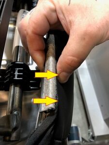 Note1x clip, Avoid straining harness, If harness is routed as shown in 2nd photo rework is needed