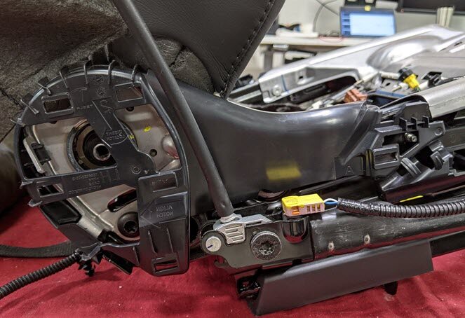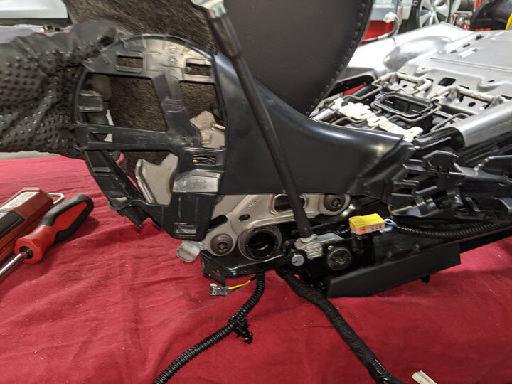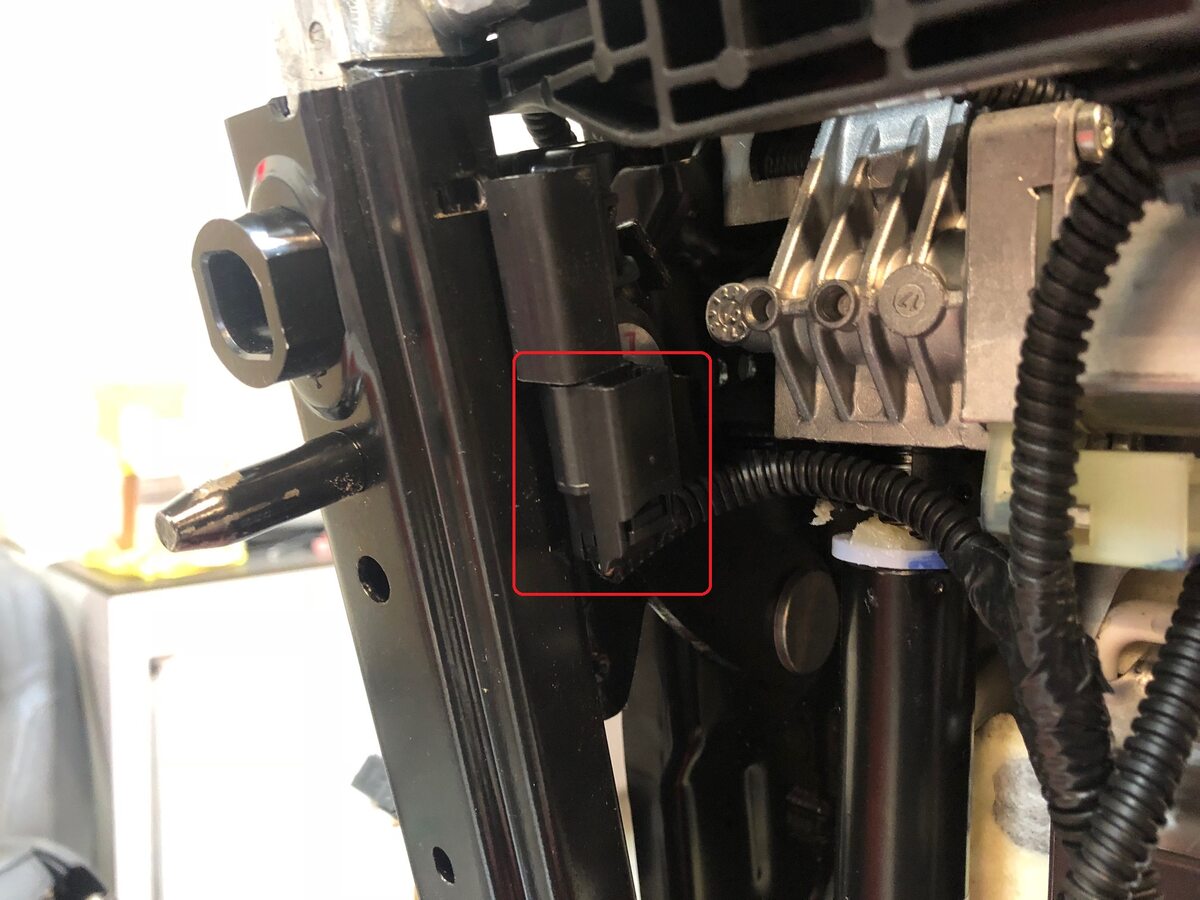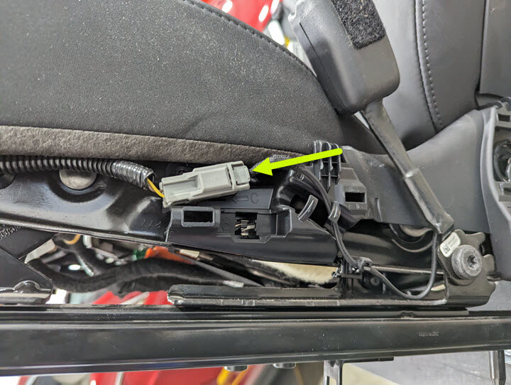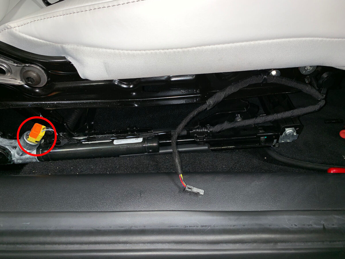 Remove clip securing the harness to the under side of the seat, next to the seat heater connectors