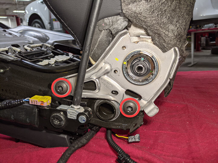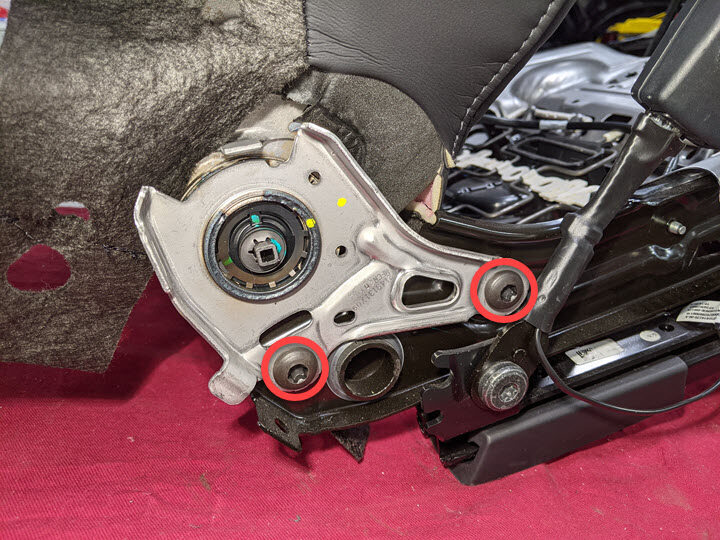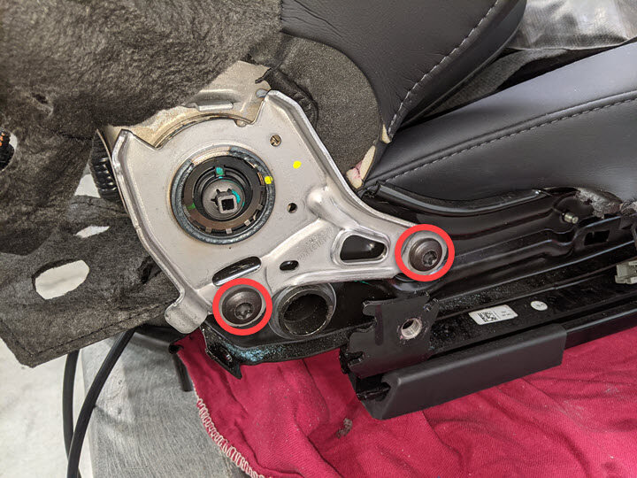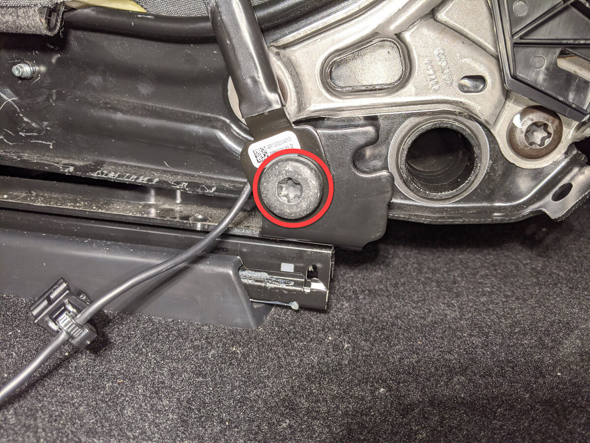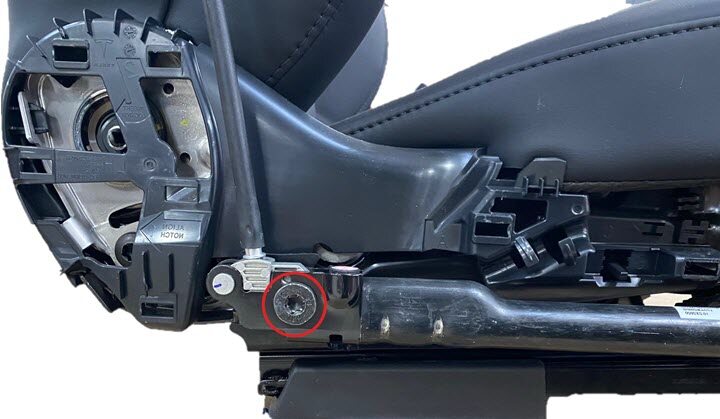 Note1x screw, T20, 4 Nm, Ensure the front of the seat is high enough to access the T20 screw.